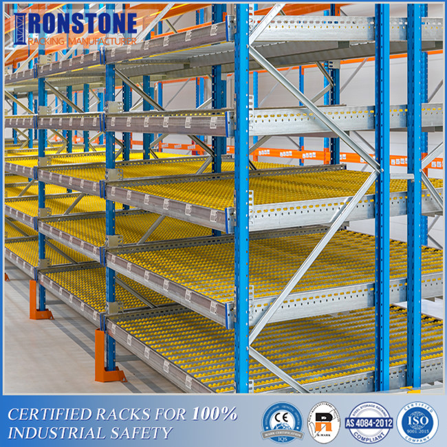 কার্টন ফ্লো র্যাকিং একটি স্বতন্ত্র ইউনিট বা একটি সম্পূর্ণ সমন্বিত সিস্টেম হতে পারে যা ফার্স্ট-ইন, ফার্স্ট-আউট (FIFO) ইনভেন্টরি ম্যানেজমেন্ট নীতি অনুসরণ করে।এই সিস্টেমগুলির মধ্যে অনেকের মধ্যে র্যাকের শীর্ষে প্যালেট স্টোরেজের পাশাপাশি নীচের অর্ধেক অংশে শক্ত কাগজ বাছাই করার ক্ষমতা রয়েছে।যখন একজন কর্মী স্টোরেজ র্যাক থেকে একটি শক্ত কাগজ সরিয়ে ফেলে, তখন পরবর্তী শক্ত কাগজটি স্বয়ংক্রিয়ভাবে সামনে চলে যায়, পুনরুদ্ধারের সময় হ্রাস করে এবং প্রক্রিয়ার দক্ষতা বৃদ্ধি করে।